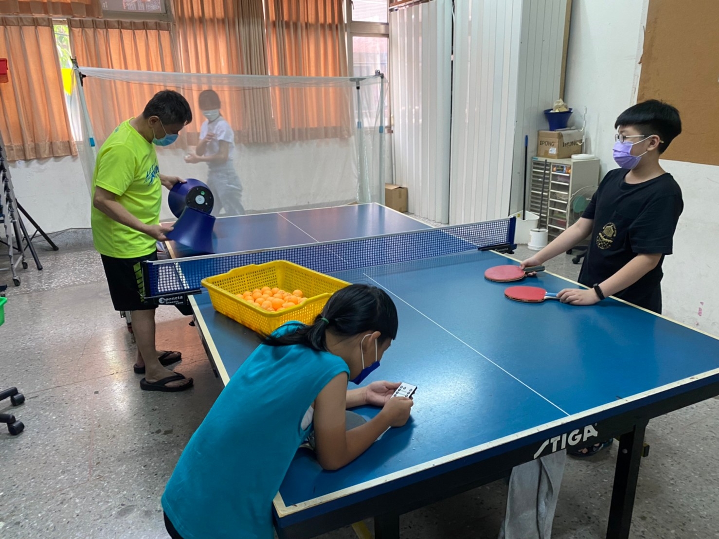 讓托育小孩有舒適的木地板可以閱讀書籍,還有桌球可以對打,消耗2名哥哥的體力,甚至愛上桌球!