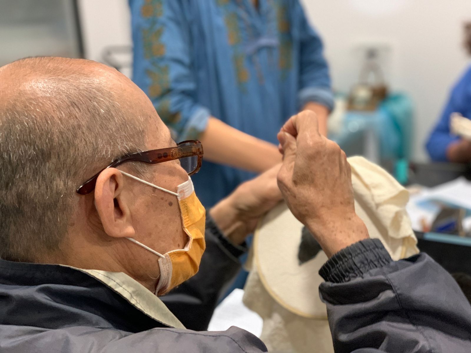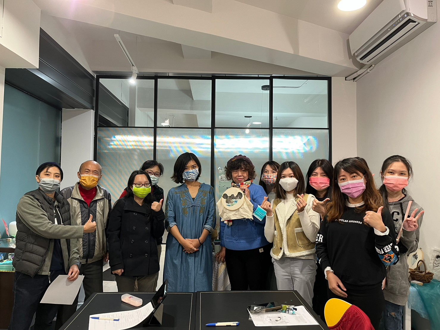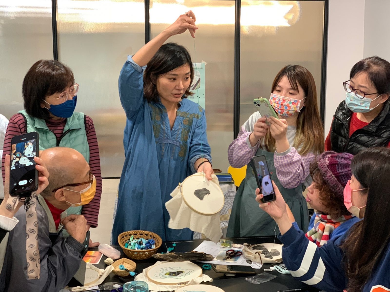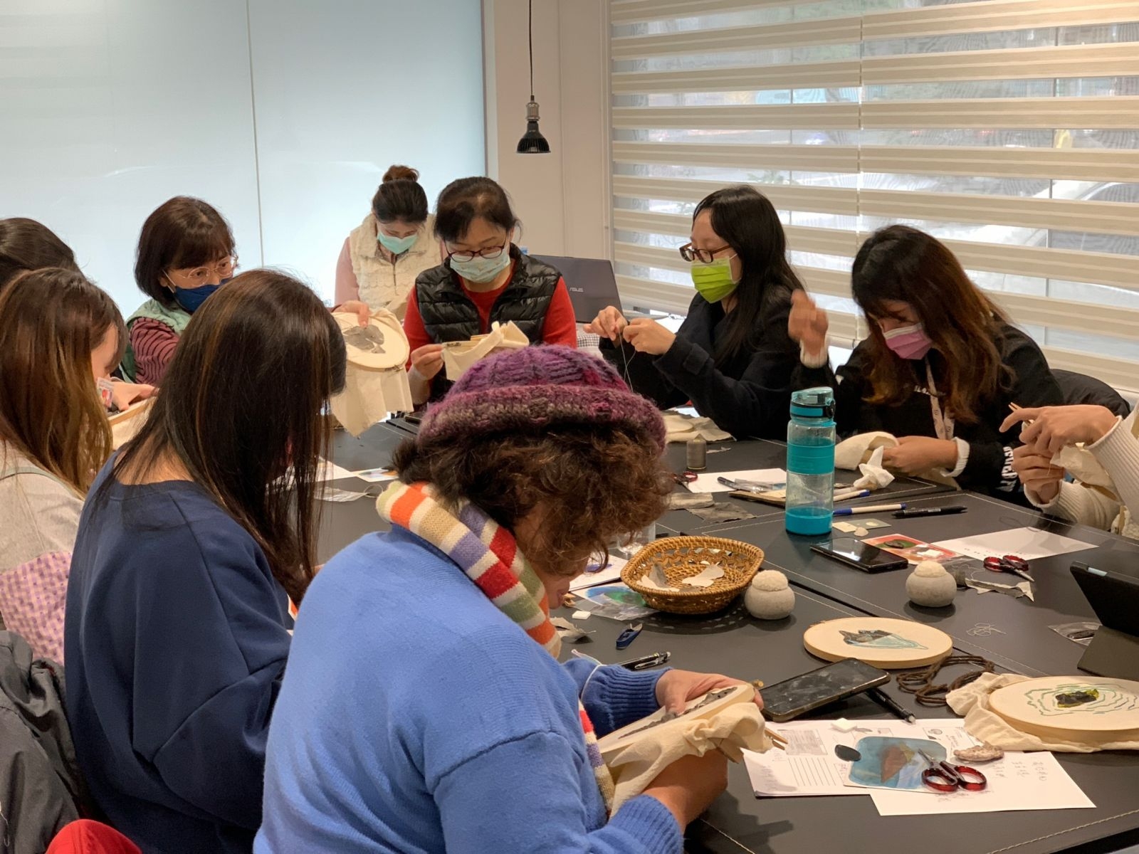 講師看見成員的投入亦有感地分享「刺繡會把時間偷走」,