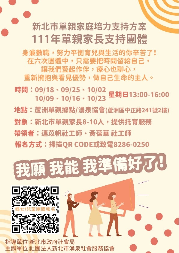 單親團體主題:以優勢觀點結合藝術創作的方式,陪伴婦女探索未來的想望並付諸實踐。